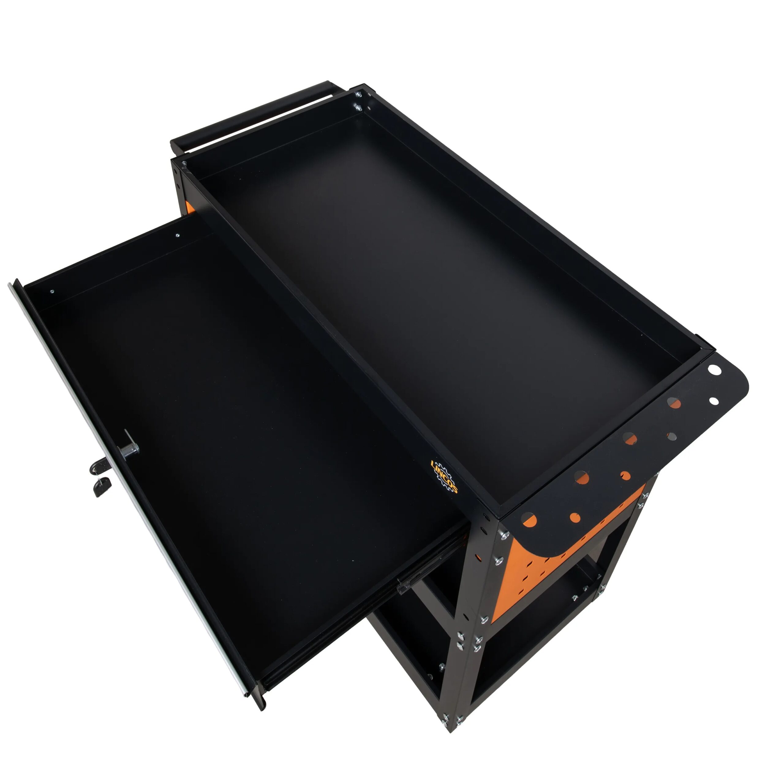 Kolica imaju tri čvrste police pogodne za odlaganje alata, komponenti ili malih mašina. Fijoka koja se može zaključati nudi sigurno mesto za manji alat, pribor ili precizne predmete kojima je potrebno organizovano i zaštićeno skladištenje.